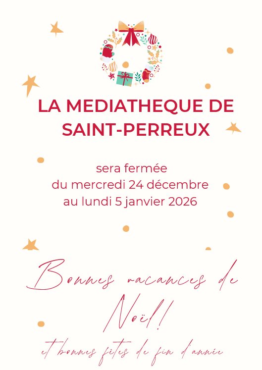 La médiathèque sera fermée du 24 décembre 2025 au 5 janvier 2026 inclus.