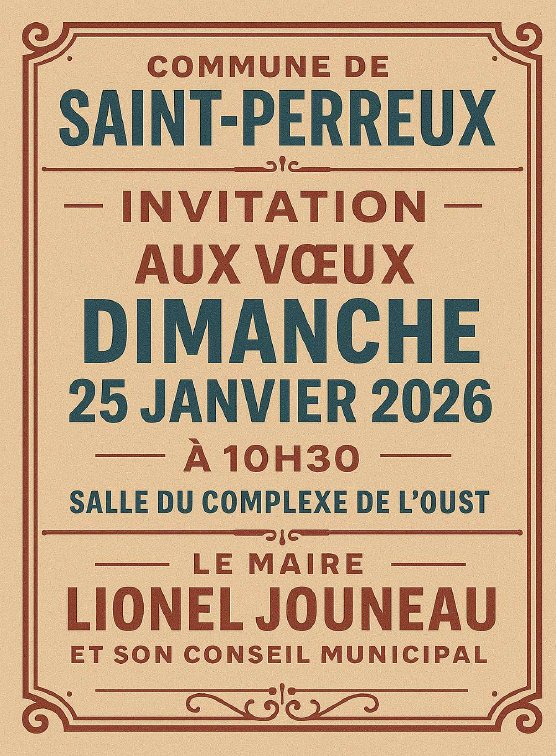 Invitation aux vœux du maire le dimanche 25 Janvier à 10h30 au complexe de l'Oust à Saint-Perreux