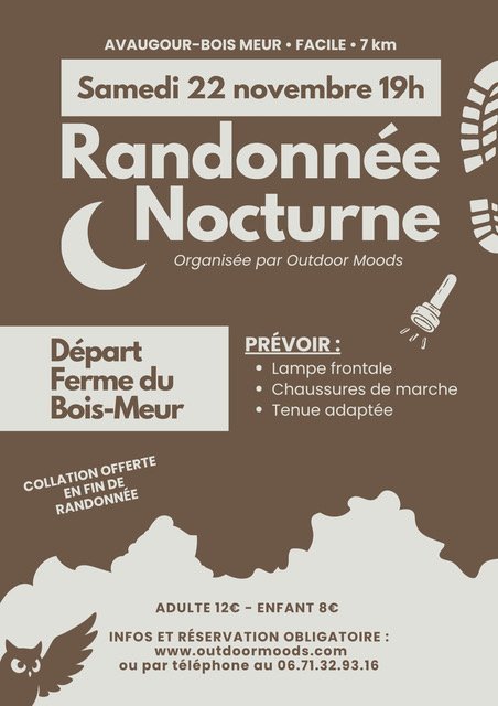 Organisée par Outdoor Moods, au départ de la Ferme du Bois Meur. 12€ par adulte et 8€ par enfant.