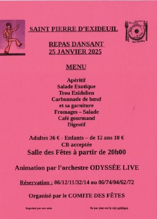 Repas dansant du Comité des Fêtes de St Pierre d'Exideuil