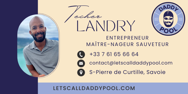 Je m’appelle Landry Techer, je suis maître-nageur sauveteur et éducateur sportif, fondateur de DaddyPool Academy, une structure locale spécialisée dans les activités aquatiques adaptées, axées sur la sécurité, la prévention et la prise de confiance dans l’eau.