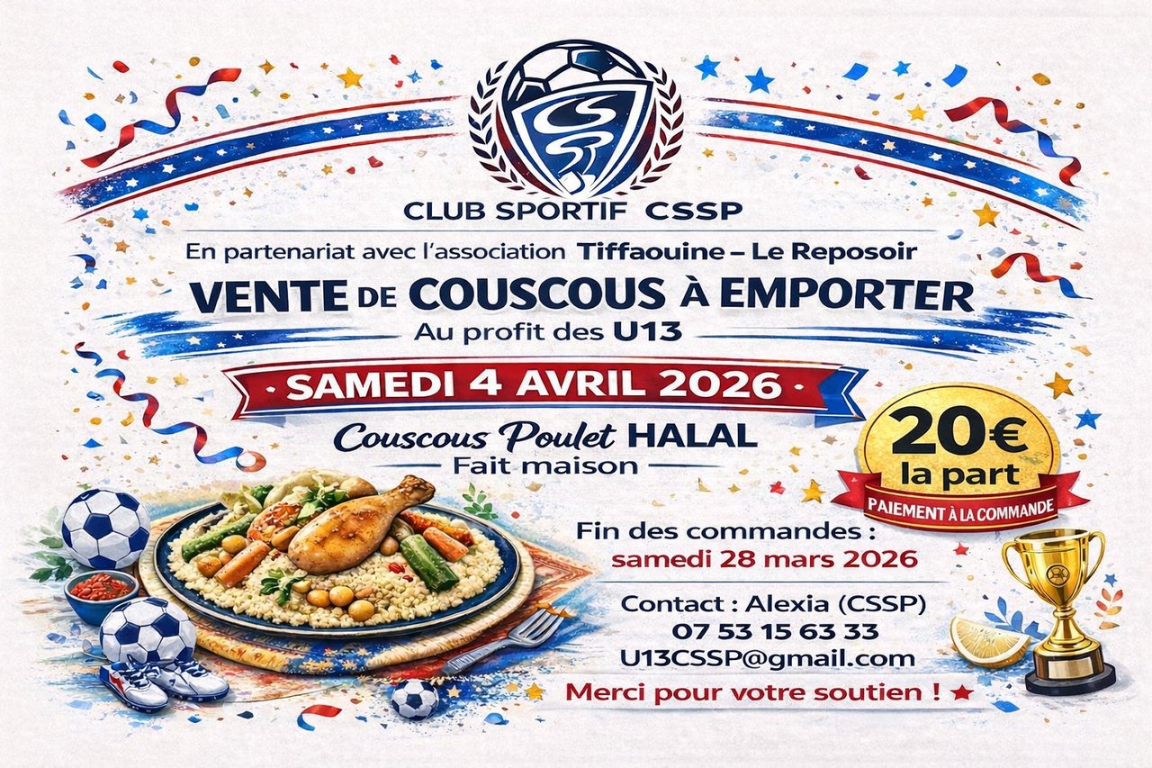 Commande jusqu'au samedi 28 mars 2026 inclus auprès d'Alexia au 07 53 15 63 33 ou à u13cssp@gmail.com.