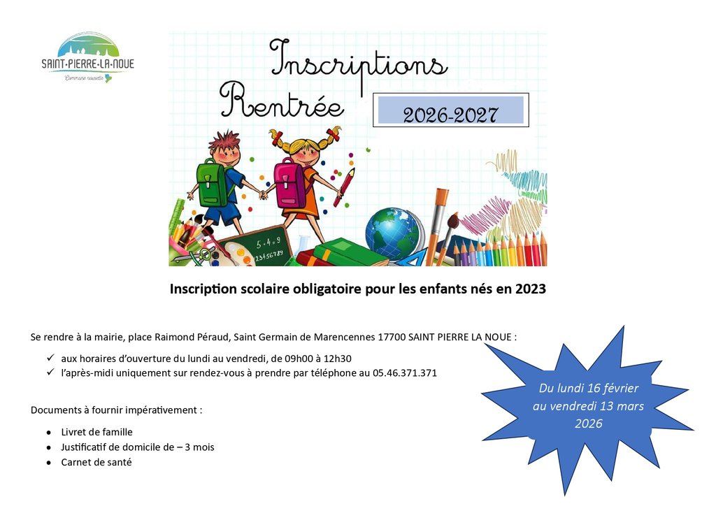 INSCRIPTIONS ÉCOLE ANNÉE SCOLAIRE 2026-2027