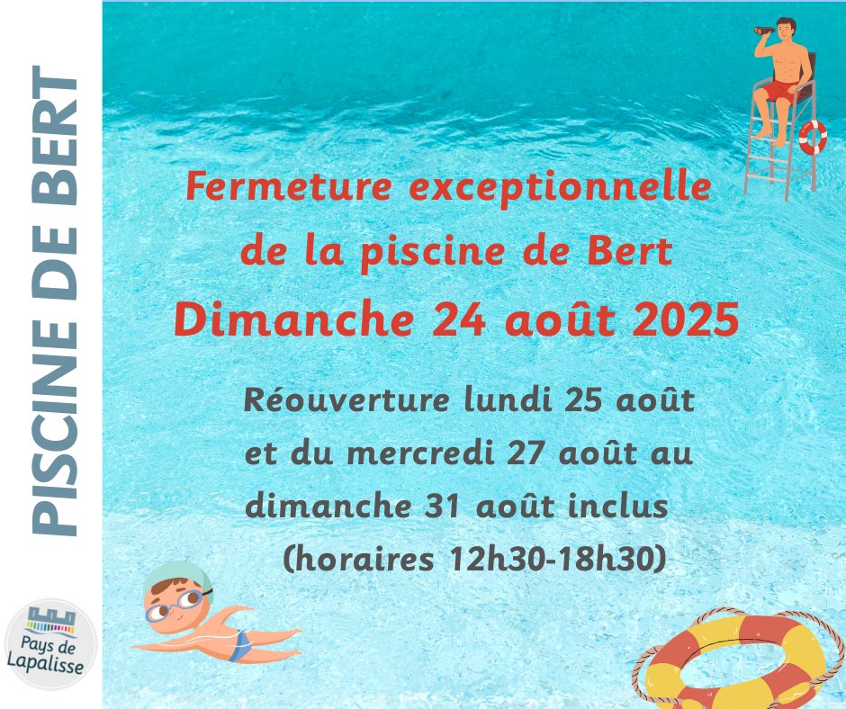 FERMETURE EXCEPTIONNELLE DE LA PISCINE DE BERT LE 24 AOÛT