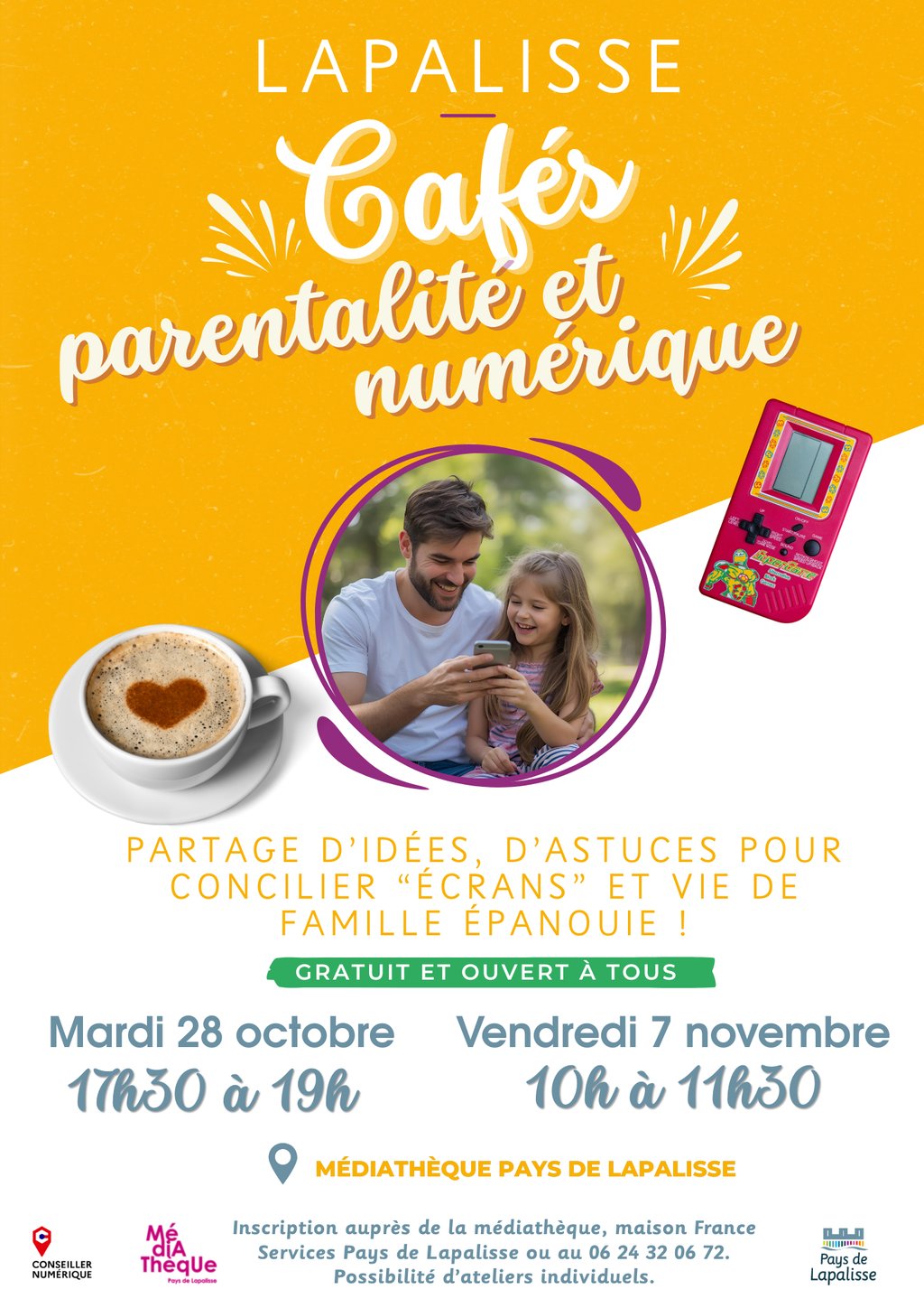 10h à 11h30 : Café parentalité et numérique (aura lieu à la médiathèque)