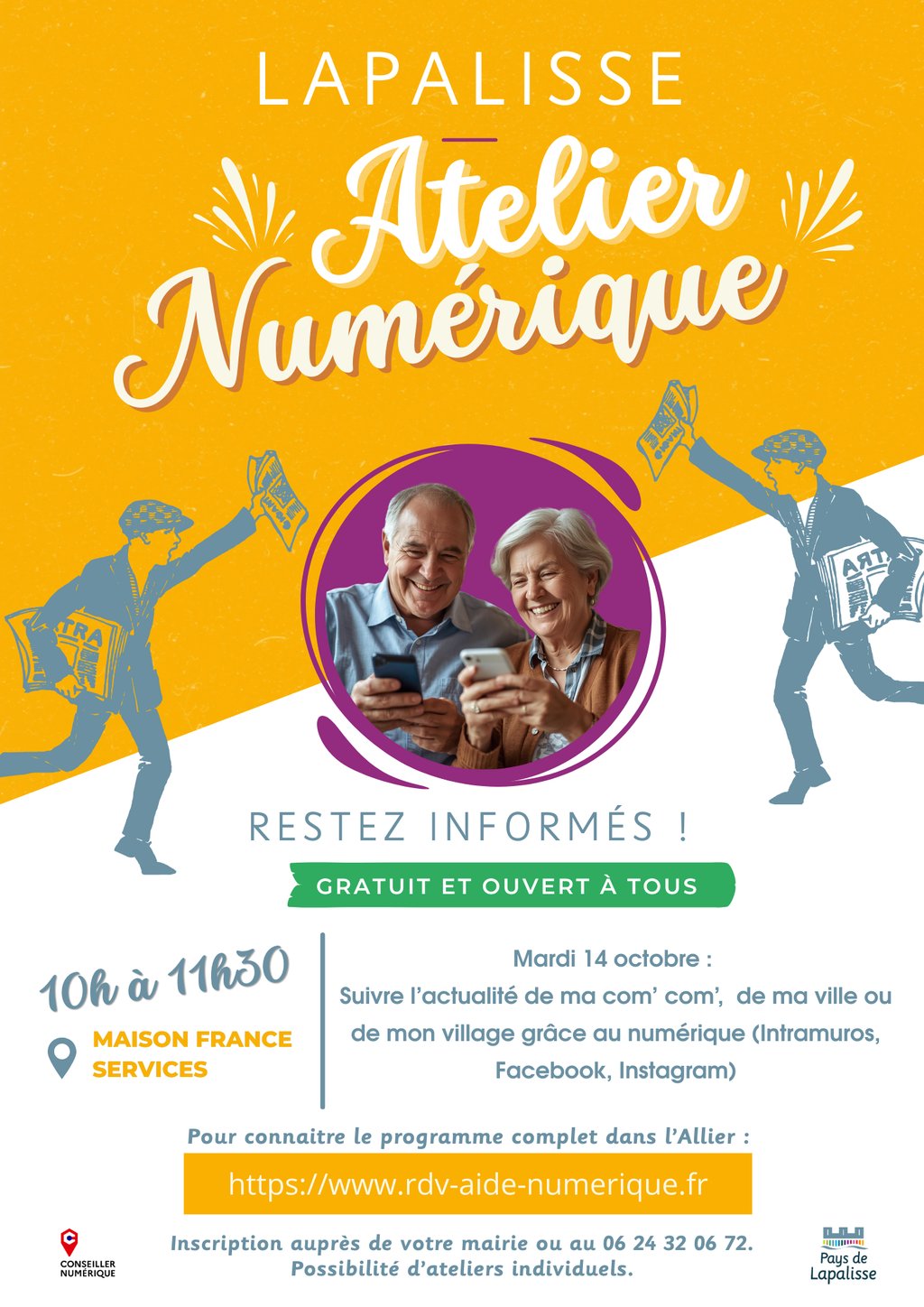Vendredi 21 novembre 2025 : Suivre l’actualité de ma com’ com’, de ma ville ou de mon village grâce au numérique (Intramuros, Facebook, Instagram) de 10h à 11h30.