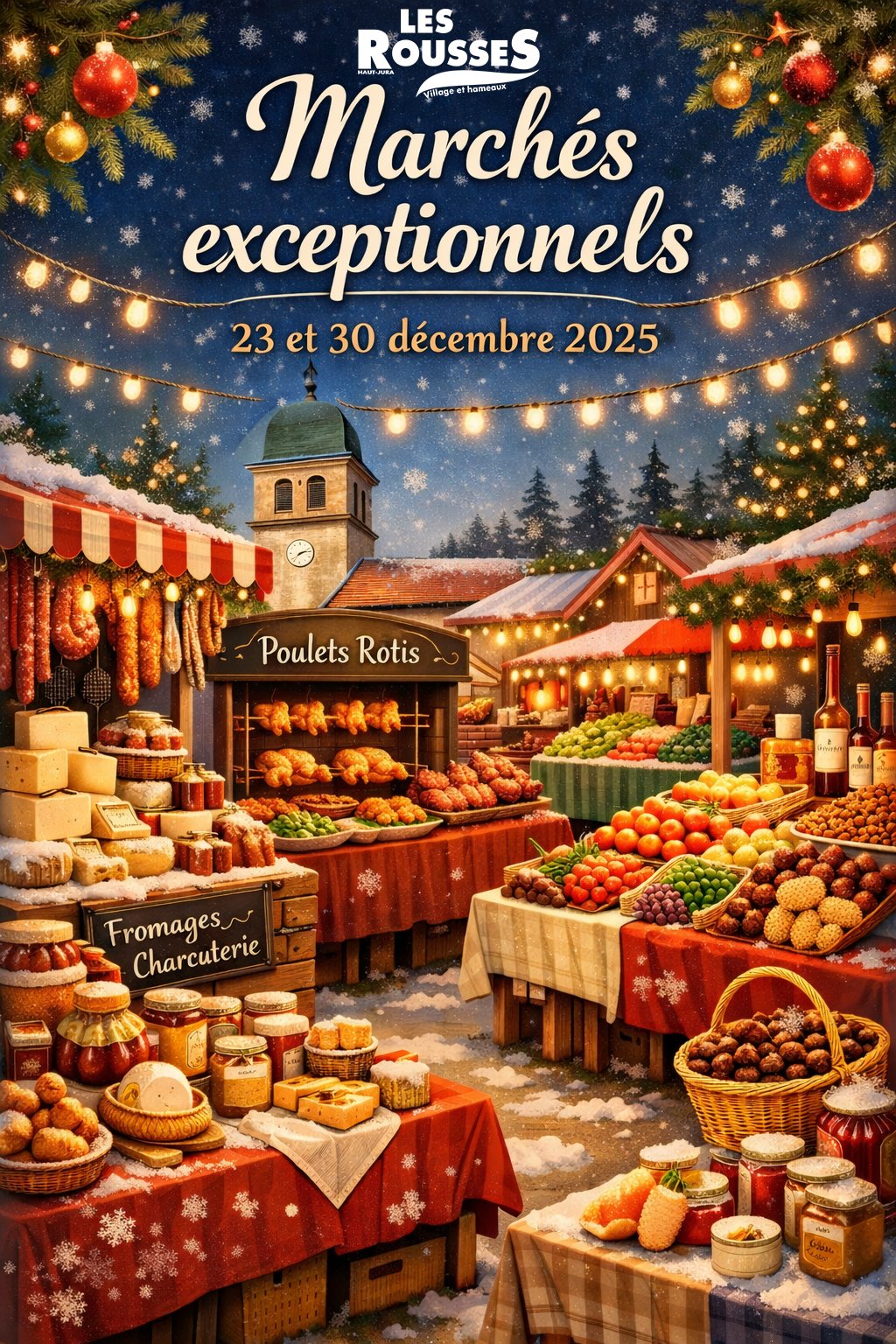 À l'occasion des fêtes de fin d'année, et pour faciliter la réception de vos commandes, 2 marchés supplémentaires exceptionnels seront organisés les 23 et 30 décembre (le matin) sur le parking des sapins.