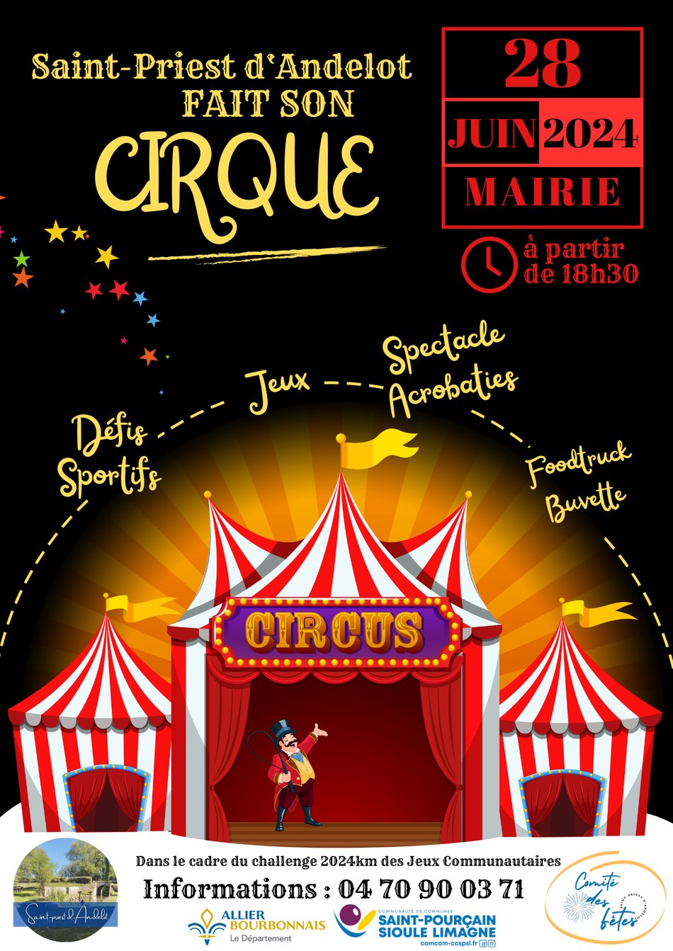 Vendredi 28 Juin | đȘ Une soirĂ©e festive Ă partager sur notre Village de Saint Priest d'Andelot avec : des dĂ©fis sportifs dans le cadre du challenge 2024km (vĂ©lo, marche, course a pied), des jeux...