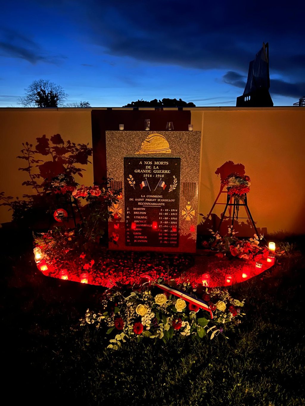 Dans notre commune de Saint-Priest d'Andelot, le devoir de mémoire brille d'une lueur particulière. Ici, nous illuminons le devoir de mémoire. Comme le veut notre tradition, des bougies sont allumées aujourd'hui au pied de notre monument aux morts.