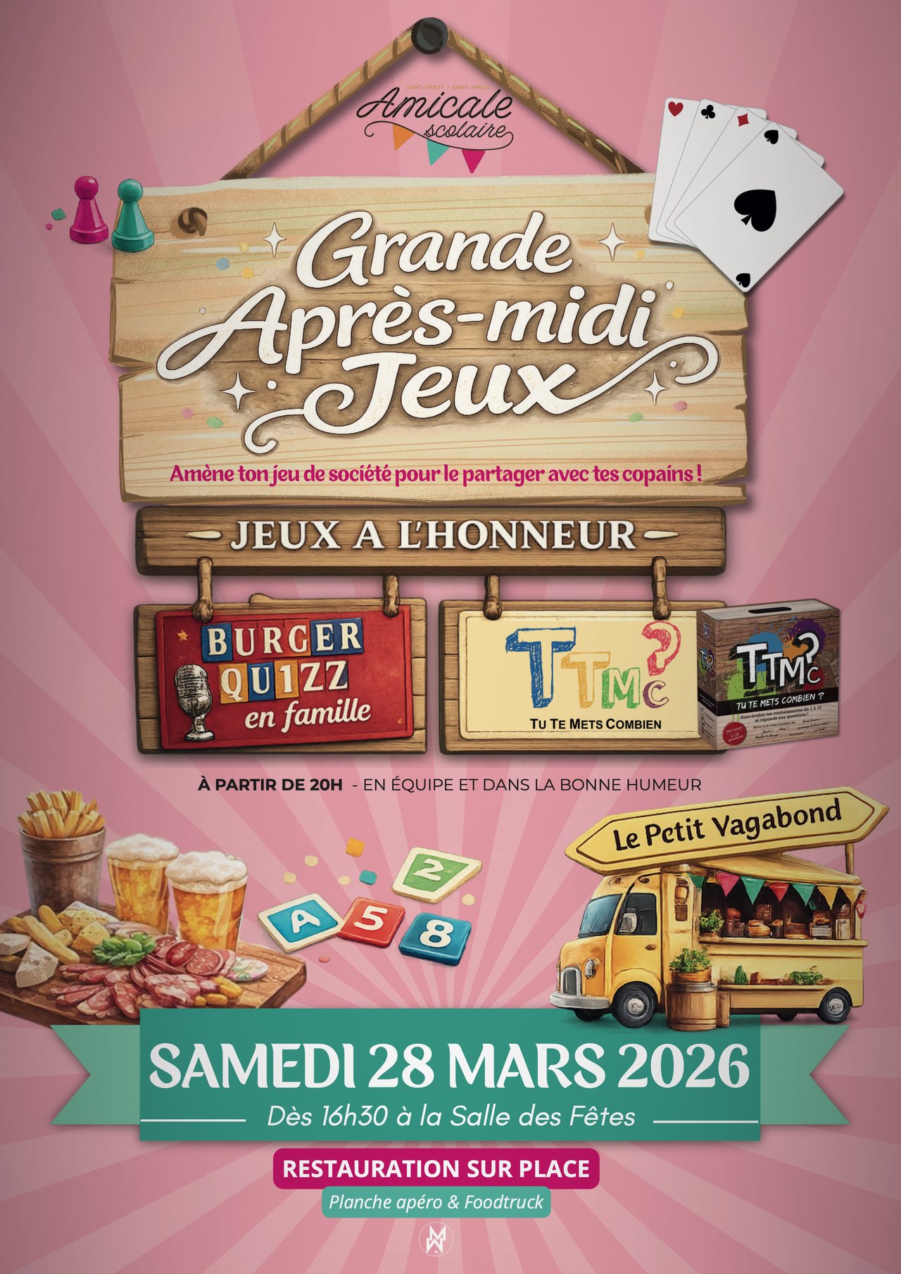 Grande après-midi jeux organisée par l'amicale scolaire samedi 28 mars prochain !