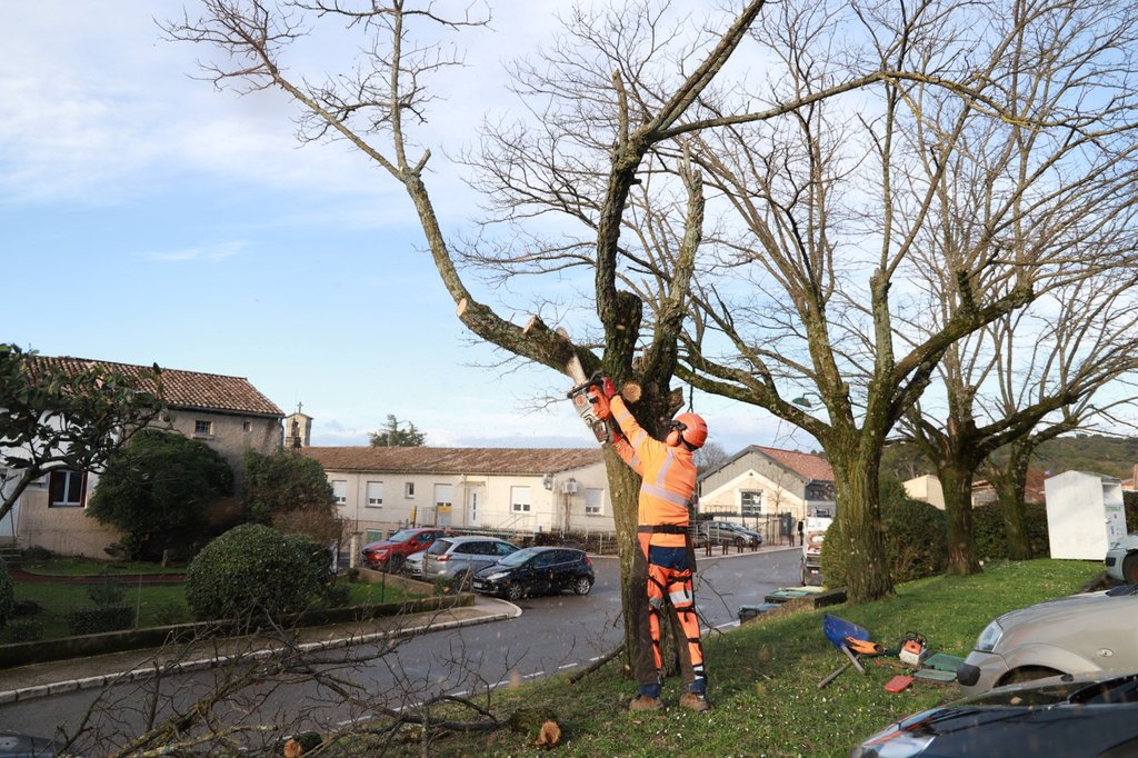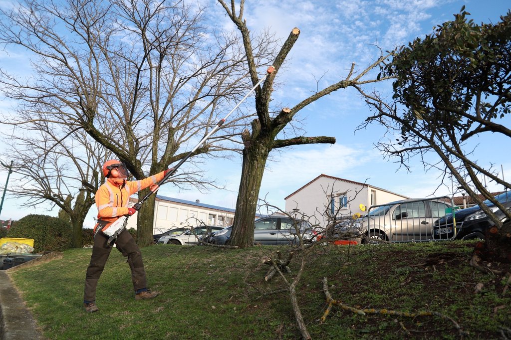 Pour garantir la sécurité des piétons, des véhicules et des végétaux environnants, les agents du service des espaces verts sont intervenus ce matin pour procéder à l’abattage contrôlé de cet arbre fragilisé.