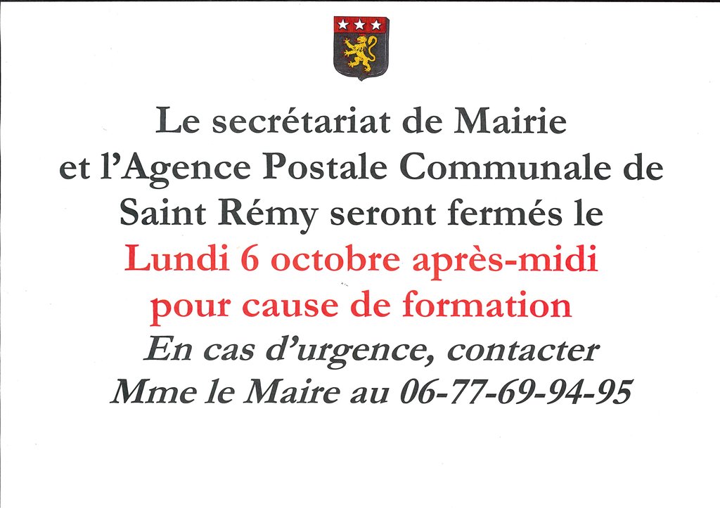 FERMETURE DE LA MAIRIE ET DE L'AGENCE...