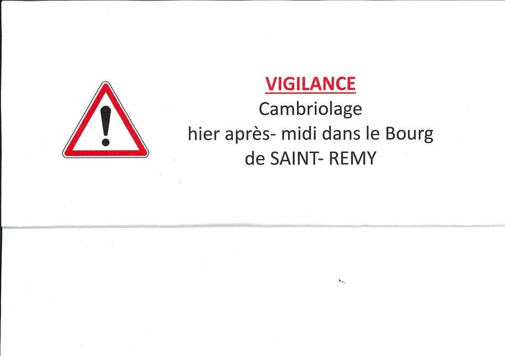 VIGILANCE CAMBRIOLAGE SUR SAINT-REMY