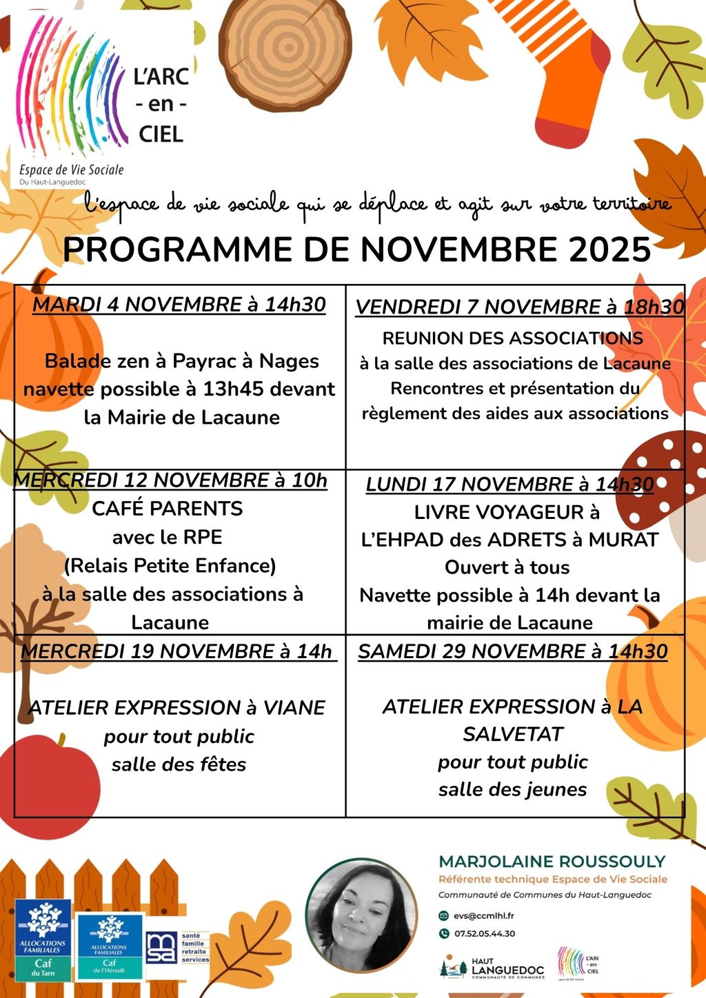 【ESPACE DE VIE SOCIALE】PROGRAMME DE NOVEMBRE🌈