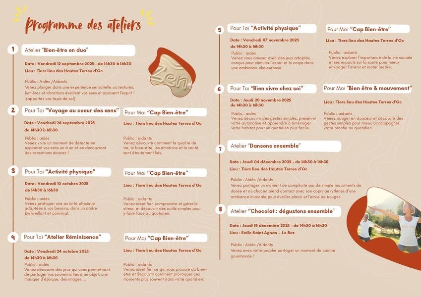 Un nouveau programme pour les aidants et leurs proches. Objectif : offrir des moments de répit, de détente et d’échange, tout en assurant un accompagnement de qualité aux personnes aidées.