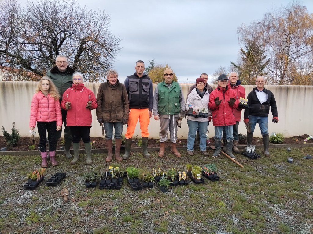 Ce samedi 29 novembre 2025, Monsieur le Maire, accompagné de ses trois adjoints, de plusieurs membres du Conseil municipal et d'habitants de notre commune, ont participé à la plantation d’une centaine d’arbustes et de vivaces sur le parking de la mairie, contribuant ainsi à l’embellissement et à la végétalisation du cœur du village.