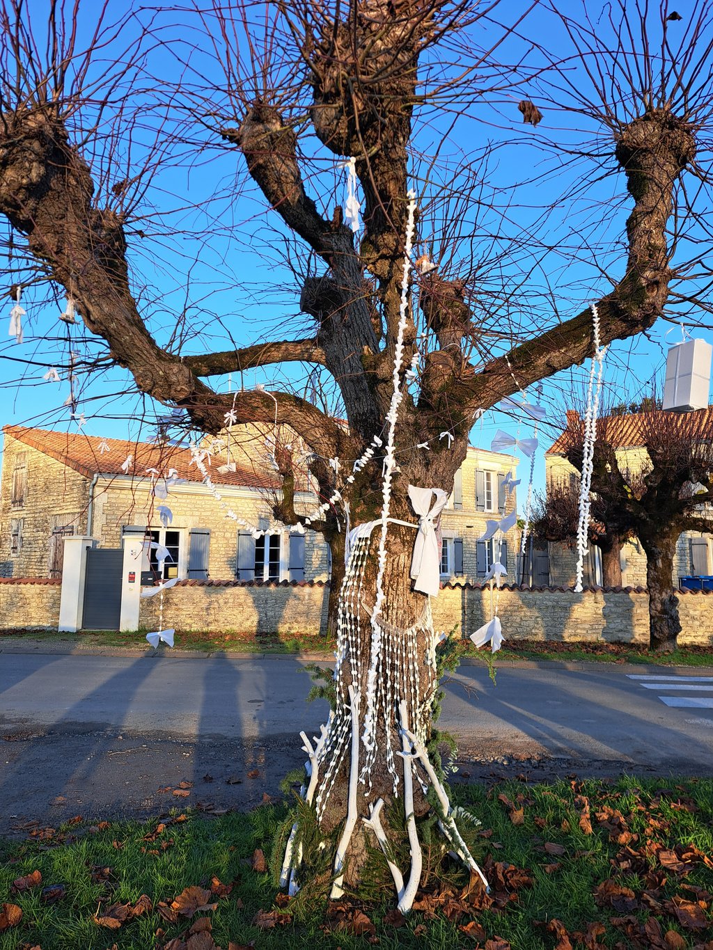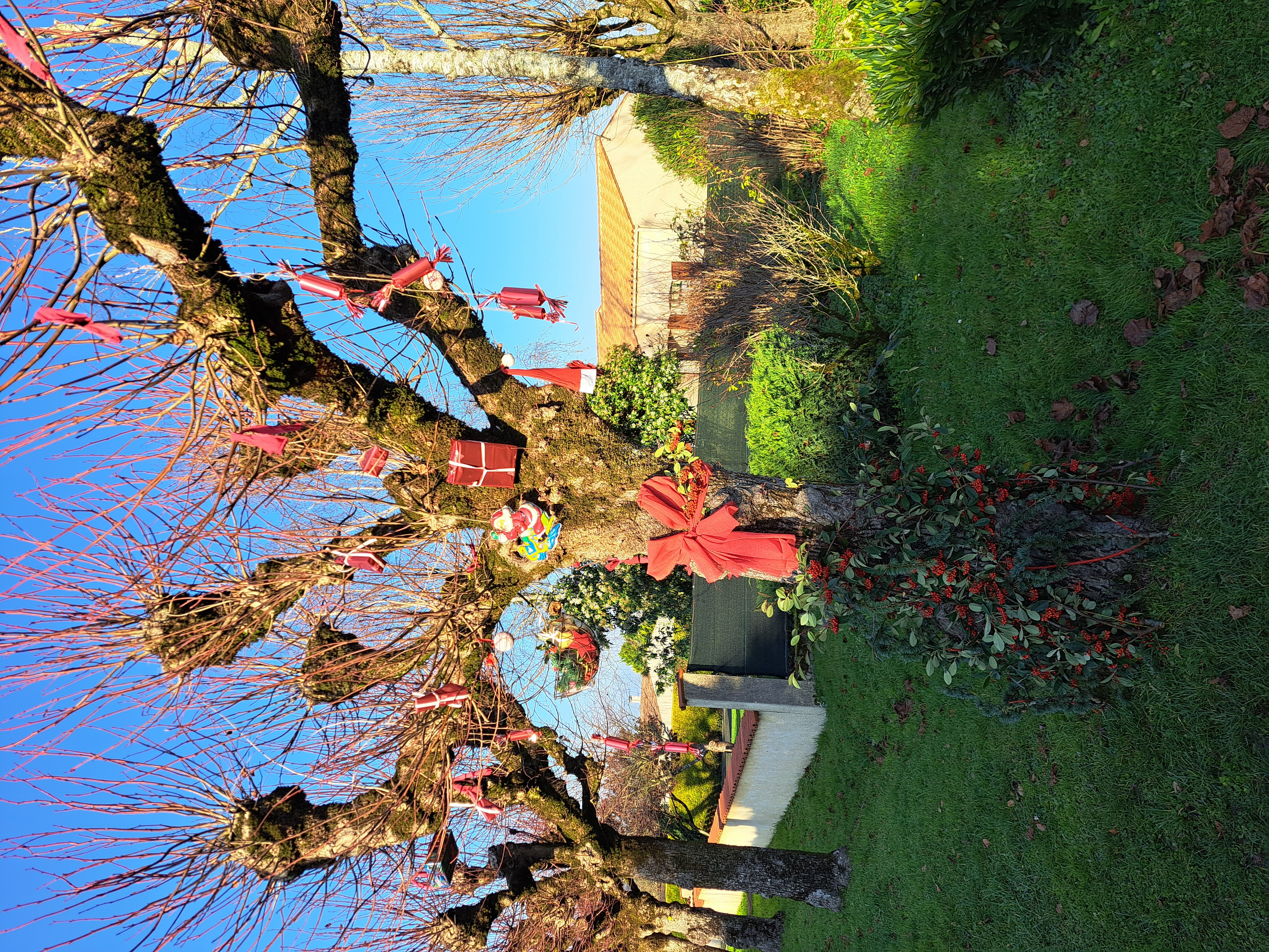 Voici 2 tilleuls décorés en avant-première en exemple pour un concours, ouvert à tous, petits et grands, en décembre 2026 de l'allée des tilleuls.