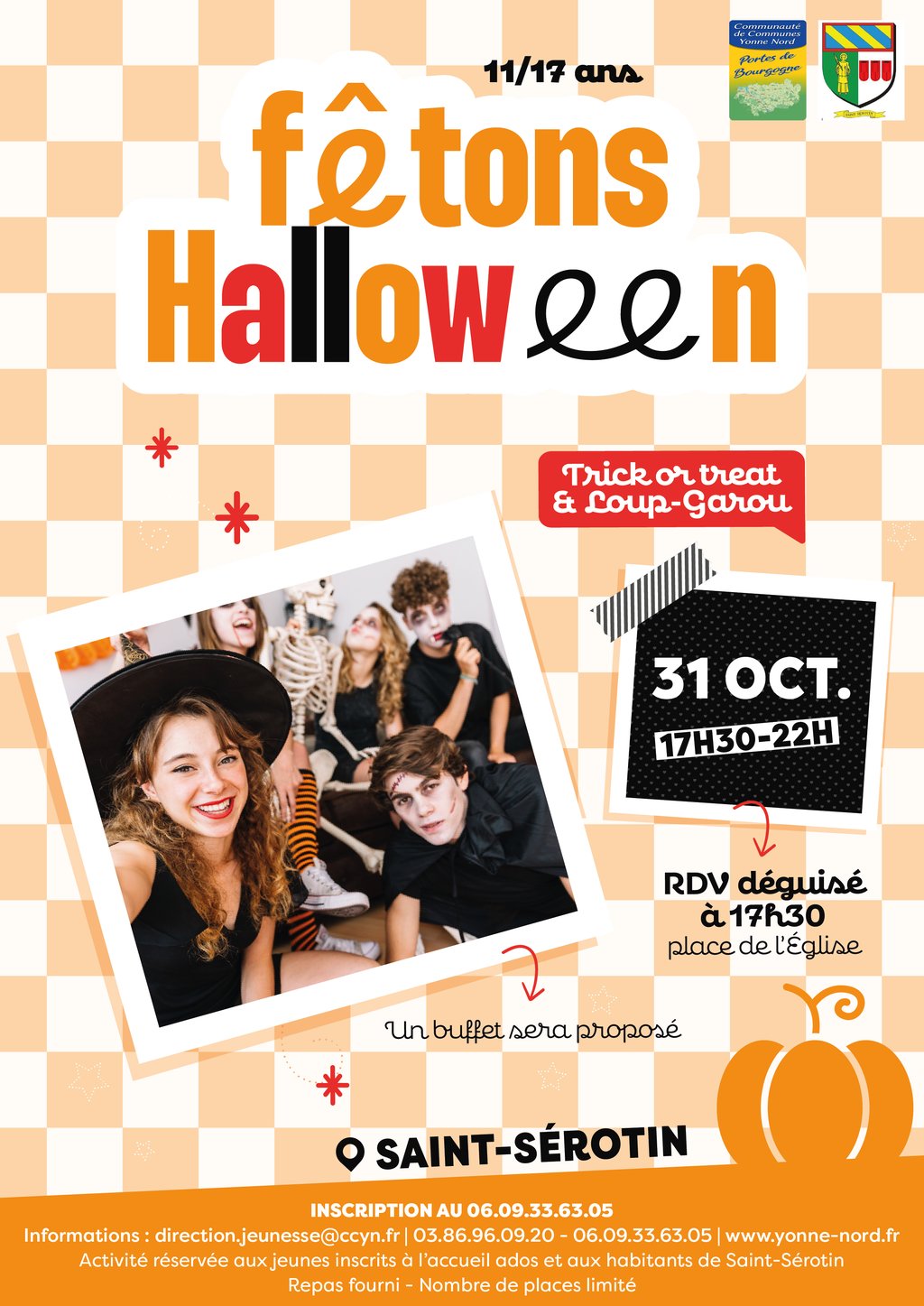 Le 31 octobre, les 11/17 ans sont invités à une soirée spéciale : déambulation « Trick or Treat » dans le village, grande partie de Loup-Garou et buffet pour reprendre des forces.