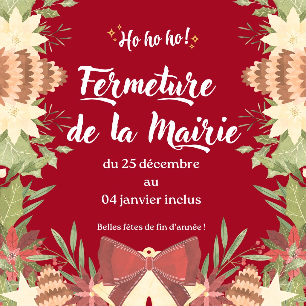 La Mairie sera fermée du 25 décembre au 04 janvier inclus