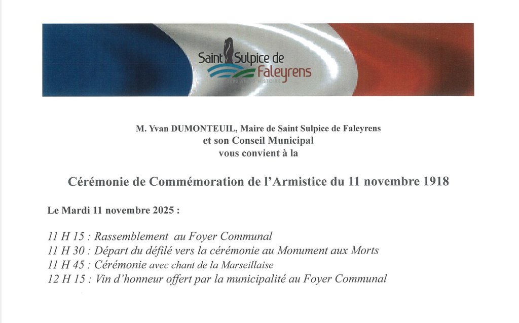 INVITATION CEREMONIE DU 11 NOVEMBRE