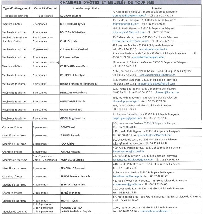 LISTE DES CHAMBRES D'HOTES ET MEUBLES DE TOURISME