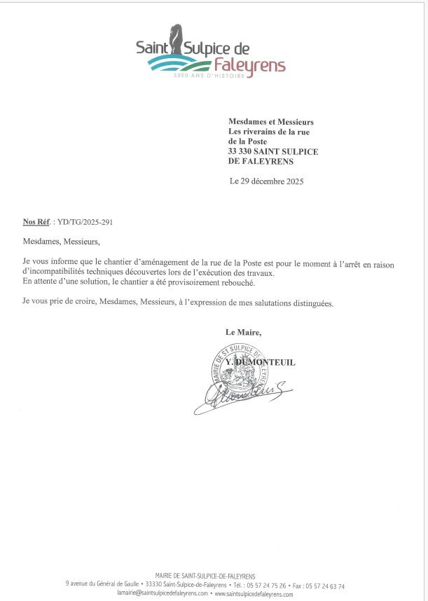 COMMUNICATION TRAVAUX RUE DE LA POSTE