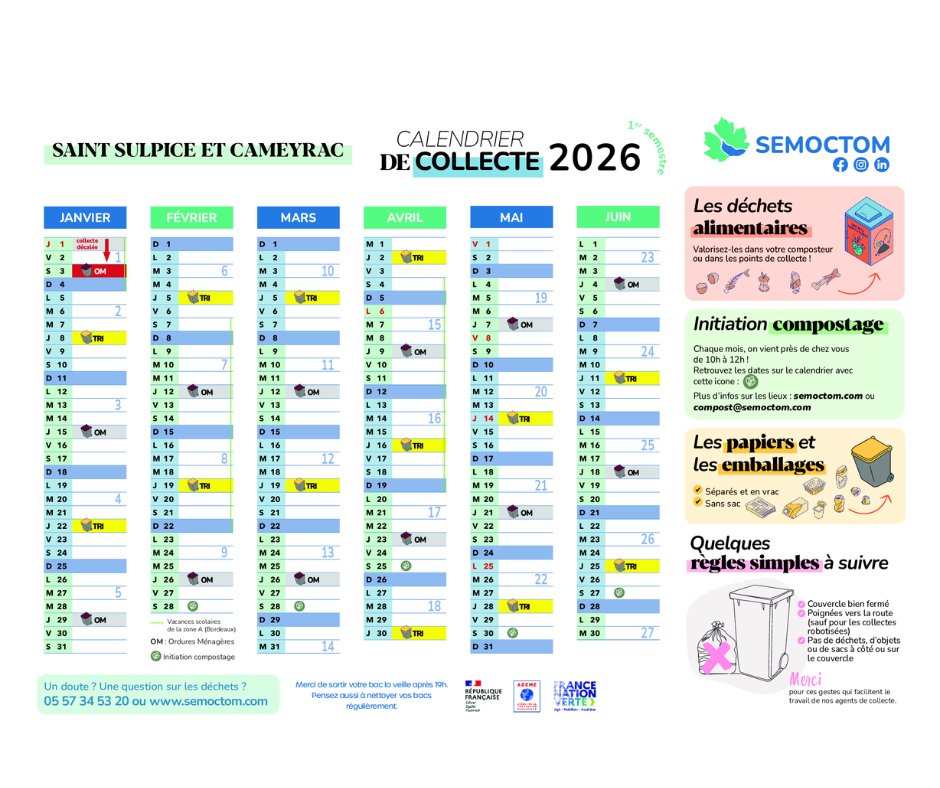 SEMOCTOM : CALENDRIER DE COLLECTE 2026