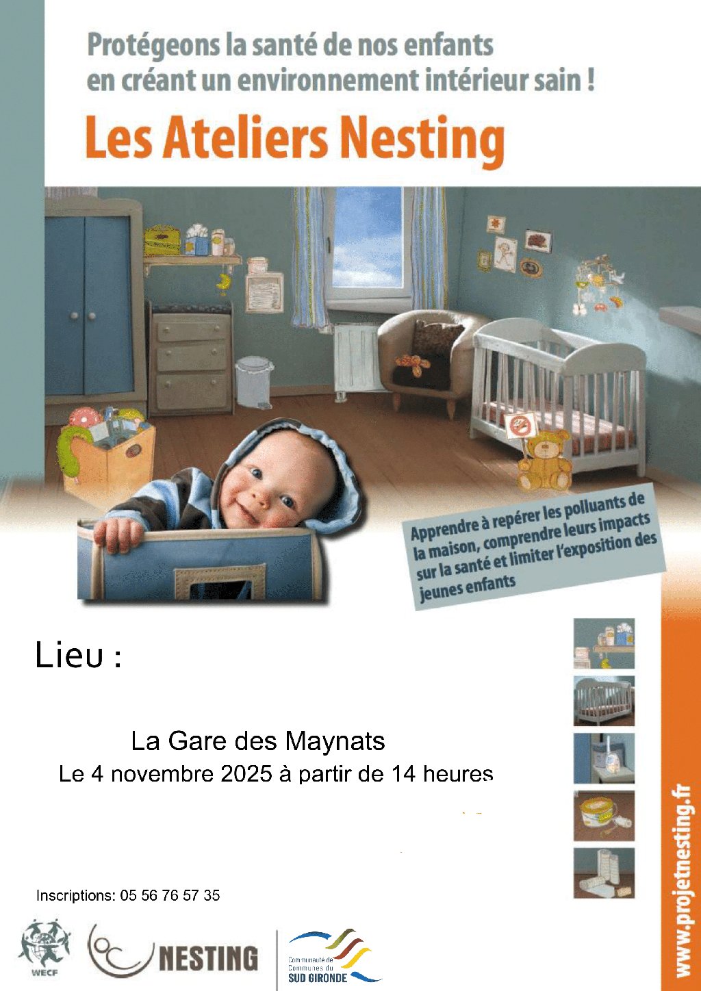 Lors de cet atelier, vous pourrez apprendre à repérer les polluants de la maison, comprendre leur impact sur la santé et limiter l’exposition des jeunes enfants.