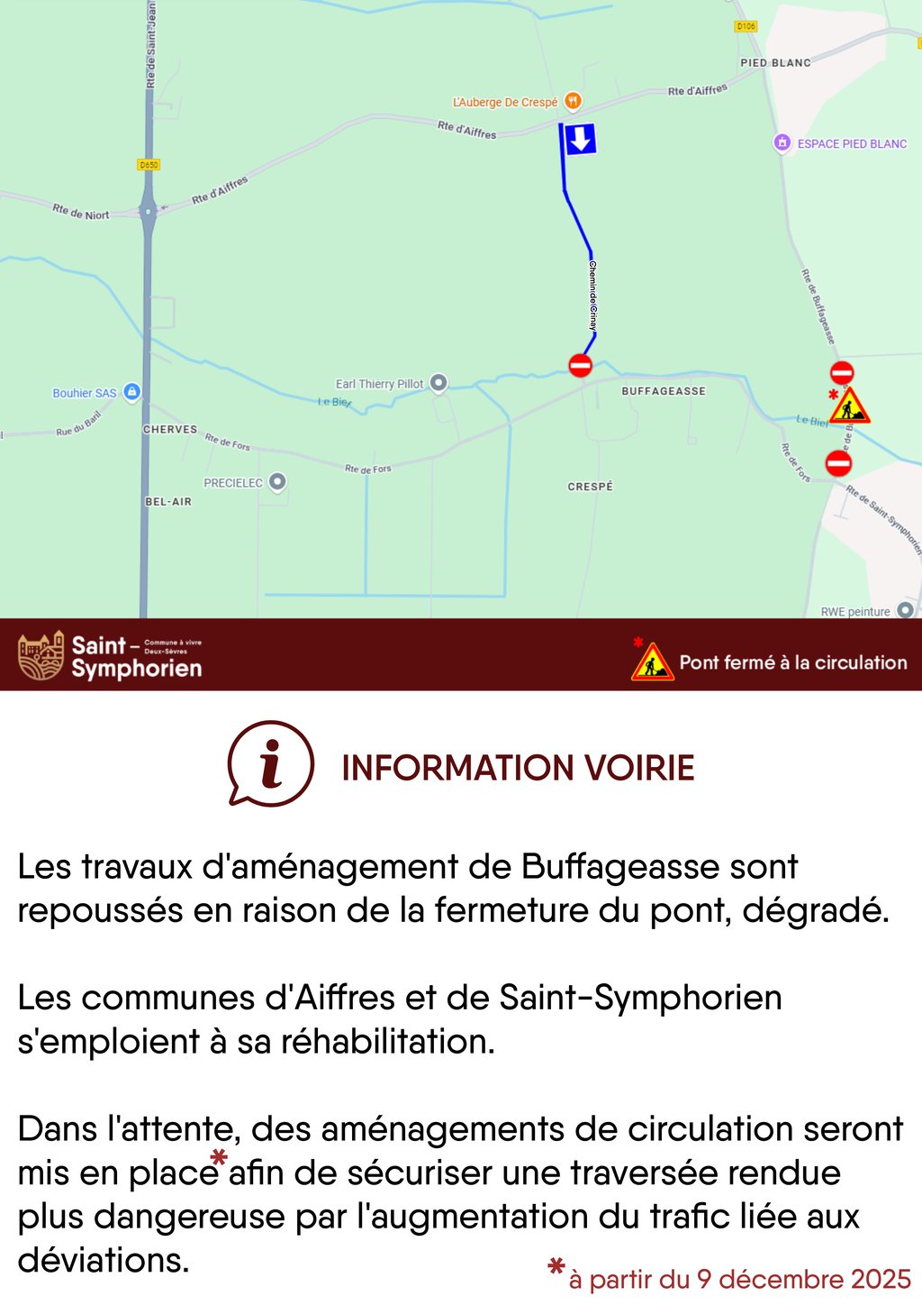 Les travaux d'aménagement de Buffageasse sont repoussés en raison de la fermeture du pont, dégradé.