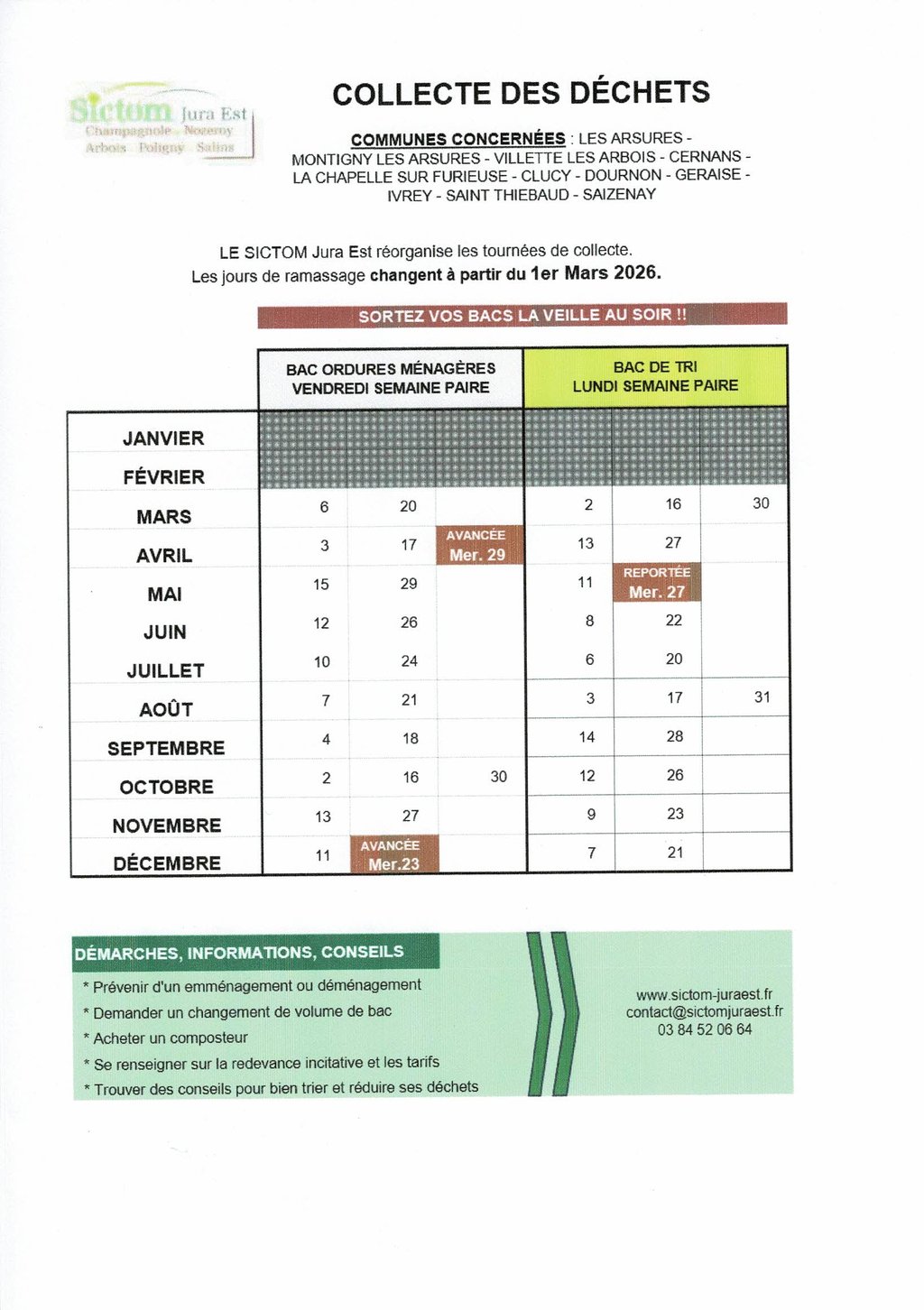 Collecte des ordures ménagères tous les 15 jours à partir du 1er mars 2026.