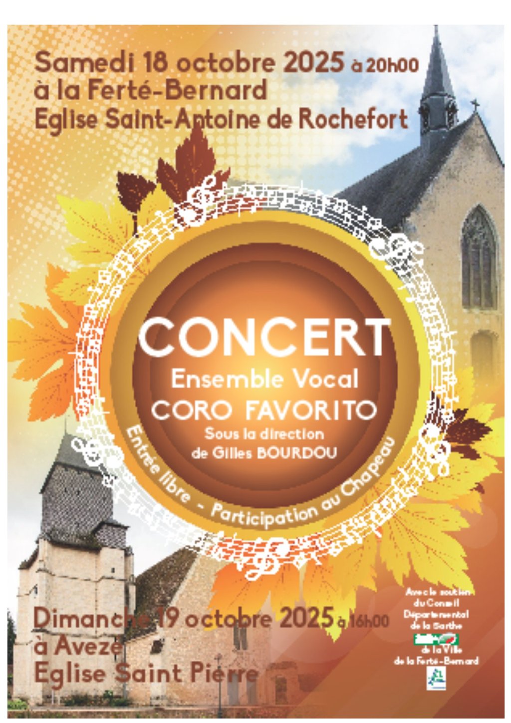 Coro Favorito vous invite à un concert en l'église St Pierre d'Avezé le dimanche 19 octobre à 16h00.