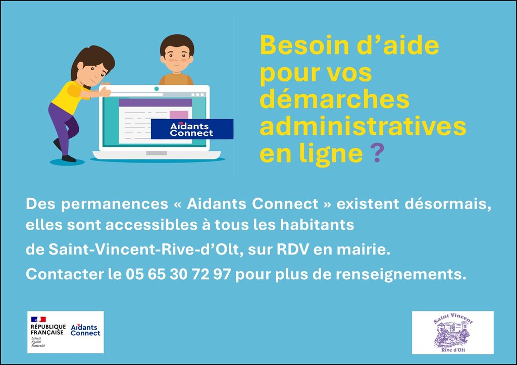 Notre secrétaire générale de mairie est dorénavant habilitée Aidants Connect. Ce service, entièrement gratuit, est accessible à tous les habitants de Saint-Vincent-Rive-d’Olt sur rendez-vous uniquement.