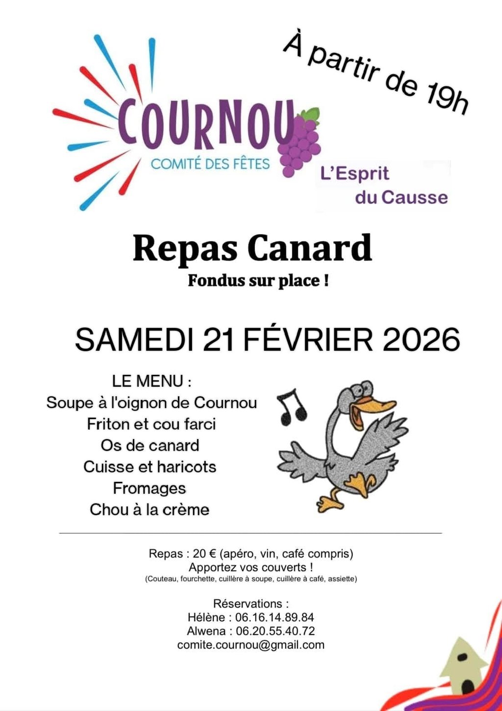 Repas canard organisé par le Comité des fêtes de Cournou.