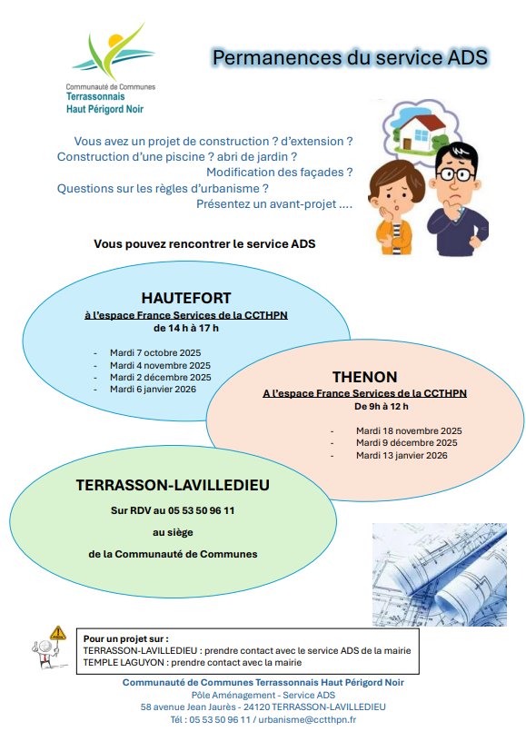 Permanences du service ADS à l'espace France Services de la CCTHPN de Thenon.