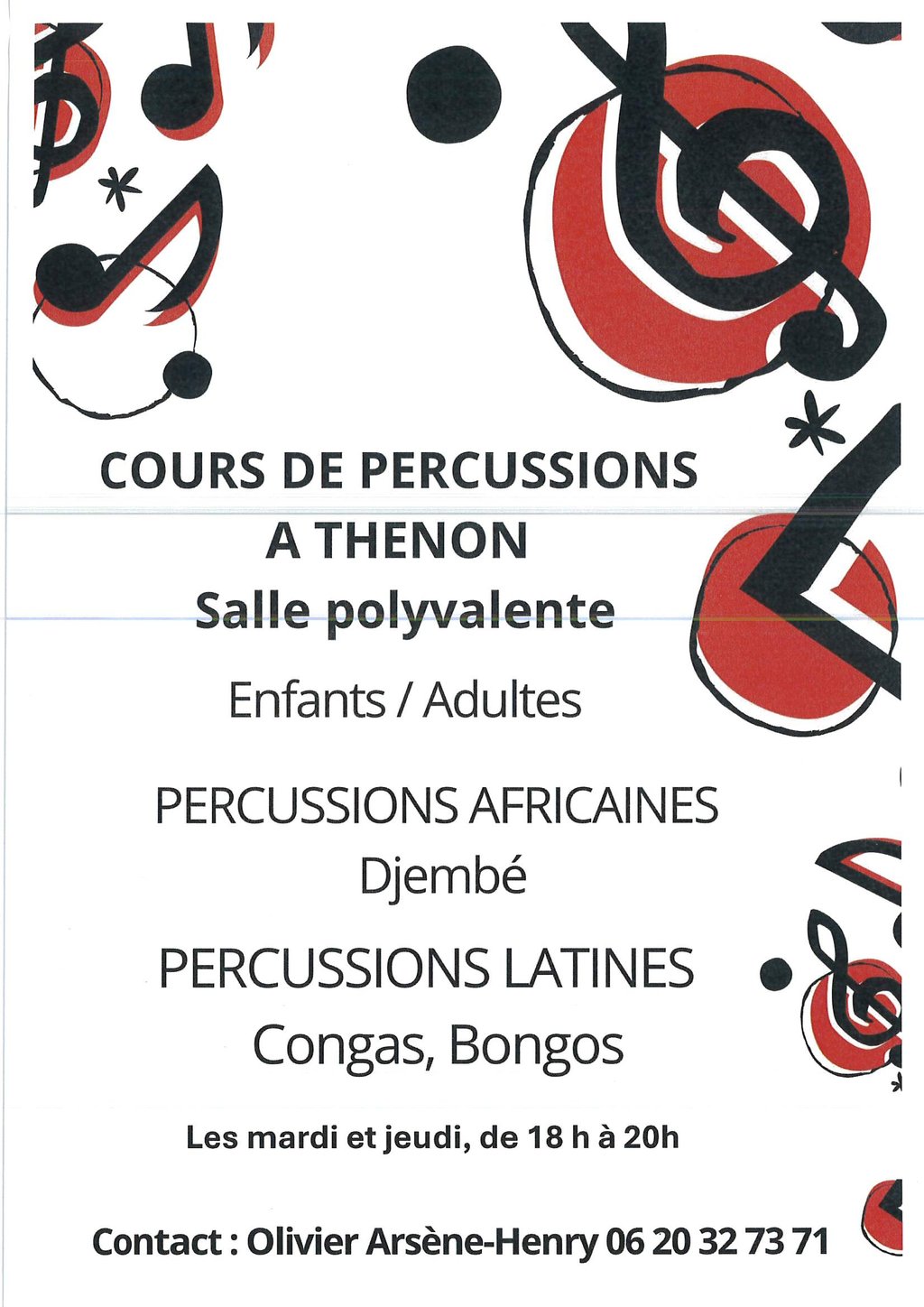Cours de percussions à Thenon tous les mardis et jeudi de 18h00 à 20h00 à la salle polyvalente.