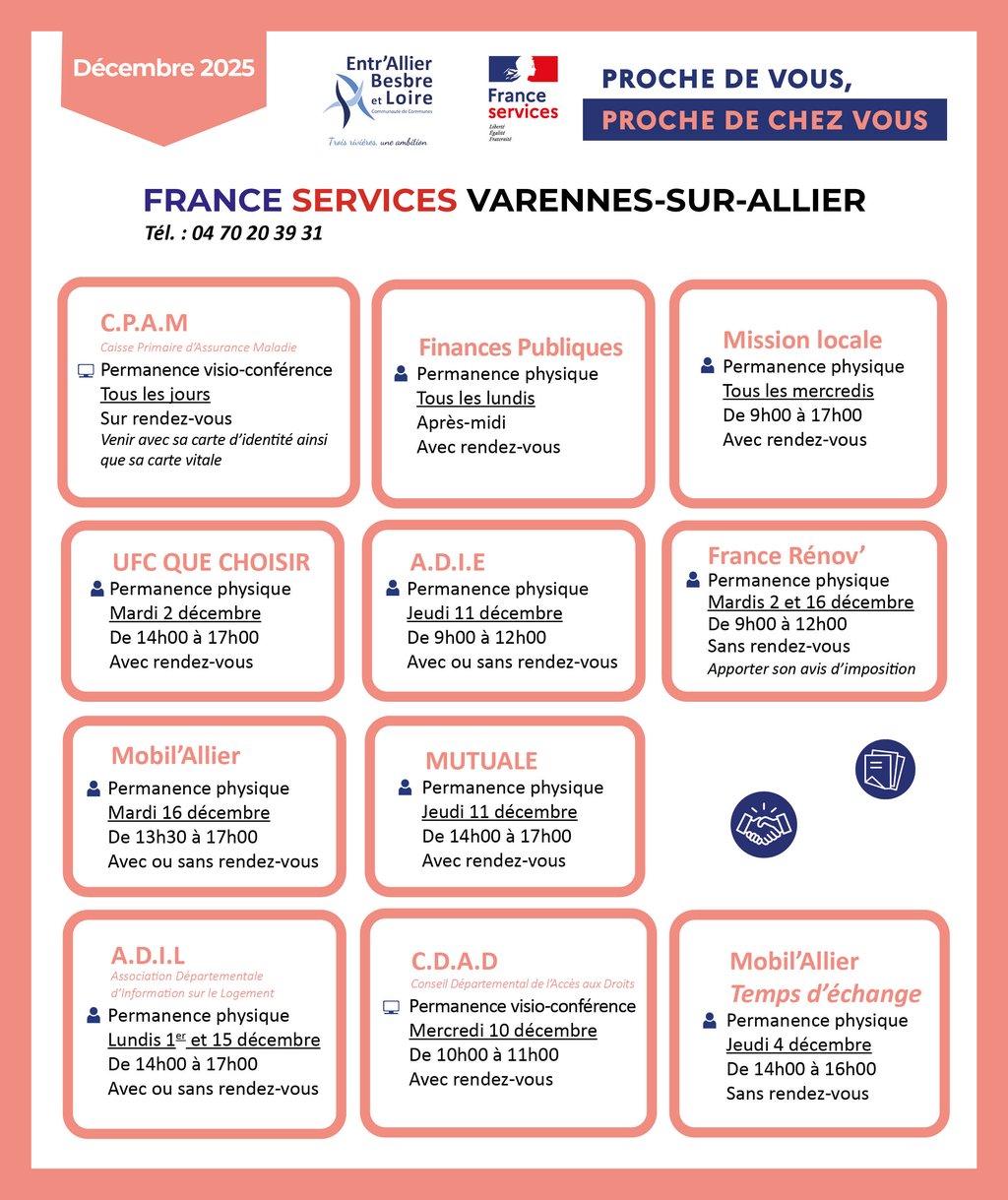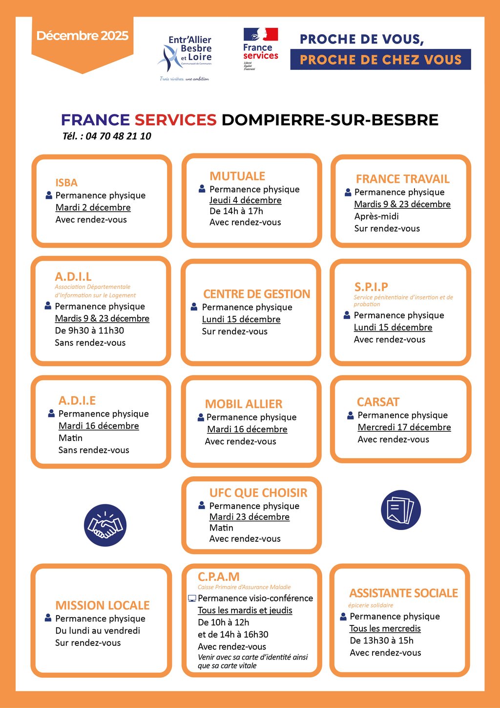 PERMANENCES DU MOIS DE DÉCEMBRE DANS LES FRANCE SERVICES