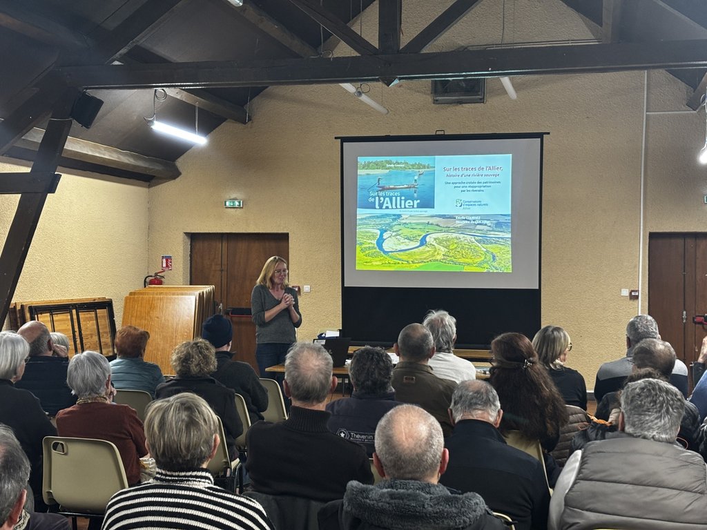 📍 Vendredi 12 décembre, la salle polyvalente de Créchy a accueilli la conférence sur la rivière Allier, animée par Estelle Cournez, directrice du Conservatoire d'espaces naturels de l'Allier - CEN Allier.