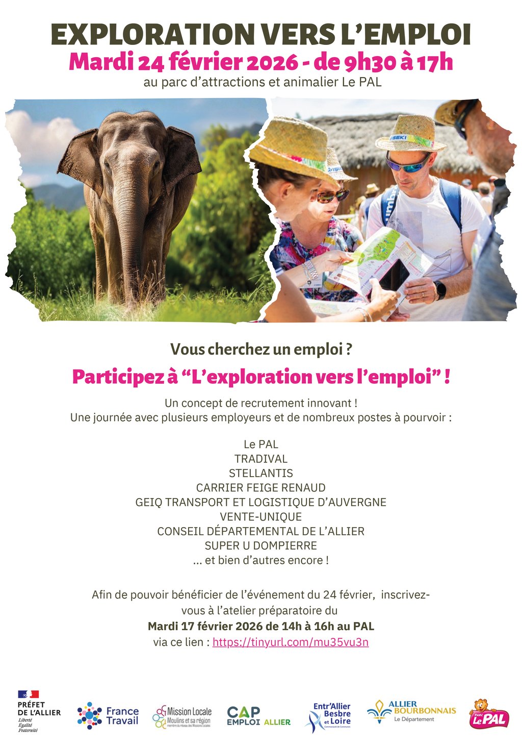 Vous êtes à la recherche d'une nouvelle opportunité professionnelle dans l'Allier ? Participez à un concept de recrutement innovant le mardi 24 février 2026, de 9h30 à 17h 📍 Parc d'attractions et animalier Le PAL