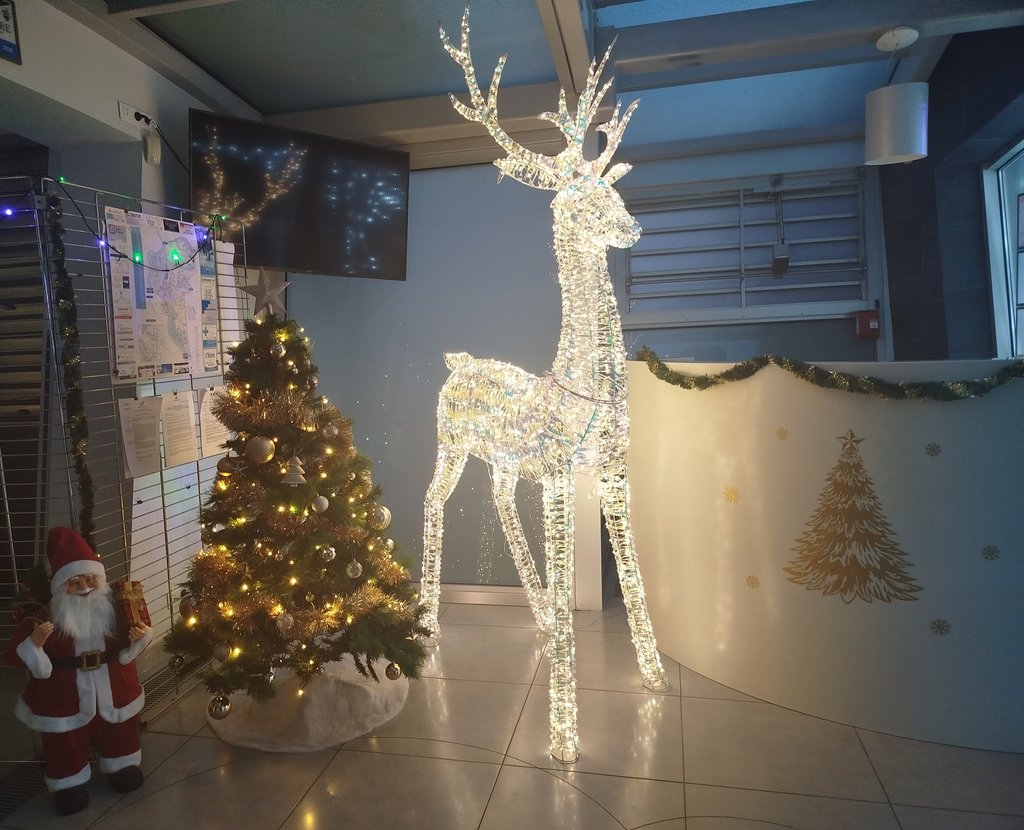 Guirlandes clignotantes, renne majestueux, sapins et Père Noël sont là pour accueillir les administrés, qu’ils soient petits ou… qu’ils soient grands ! 🎅