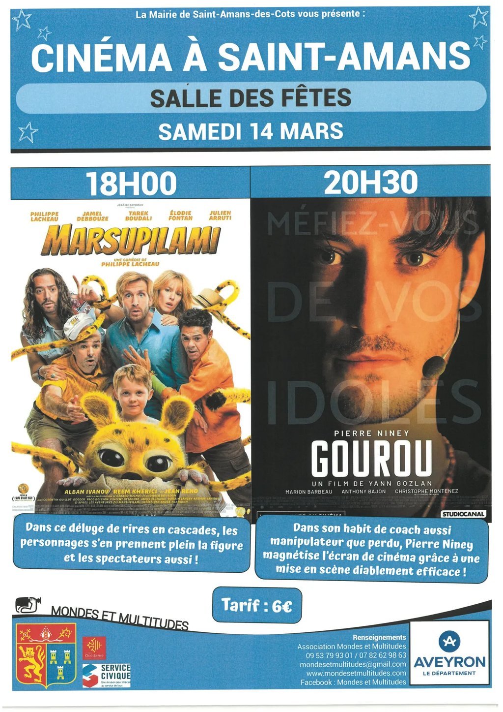 2 séances de cinéma à la salle des fêtes de Saint-Amans-des-Côts.