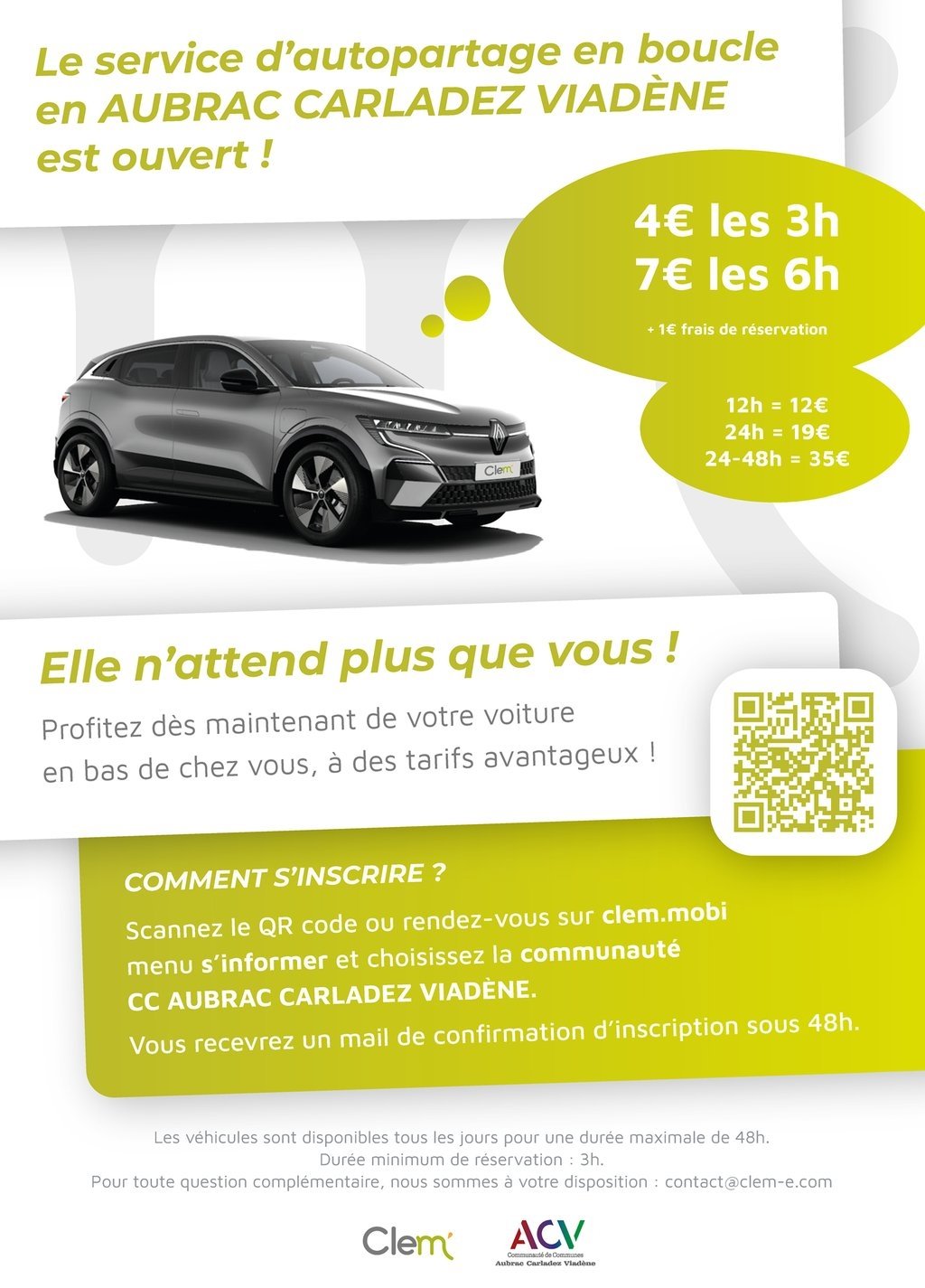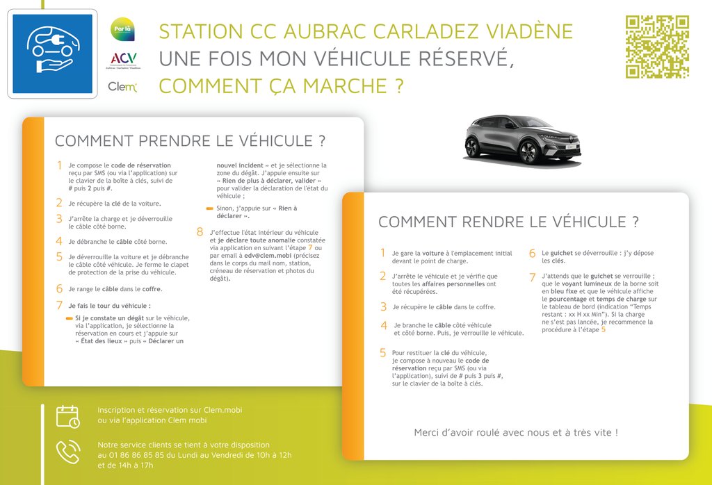 Zoom sur le mode d'emploi du service d'autopartage récemment mis en place avec le véhicule électrique disponible au Pôle Multi-services à Laguiole.