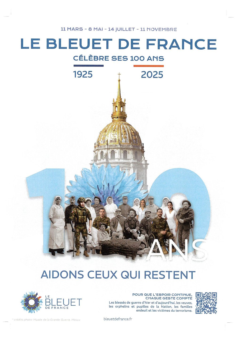 Le Bleuet de France finance des actions de mémoire et de transmission à destination de la jeunesse et des opérations de solidarité envers les militaires blessés, les victimes du terrorisme, les familles endeuillées, les pupilles de la nation et les résidents des EHPAD labellisés.