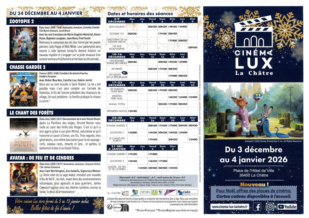 DĂ©couvrez le programme cinĂ©ma du 03 dĂ©cembre au 04 janvier 2026. đ„
