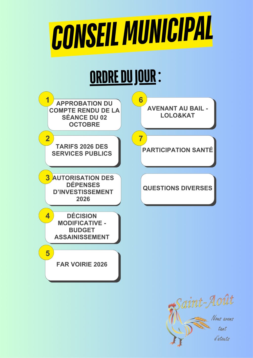 📣 La réunion du Conseil Municipal a lieu ce lundi 15 décembre 2025 à 18 h 45, dans la salle du conseil de la mairie.