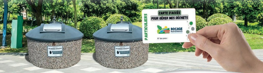 La carte est paramétrée pour utiliser tous les conteneurs d’ordures ménagères du territoire de la Communauté de Communes du Bocage Mayennais.