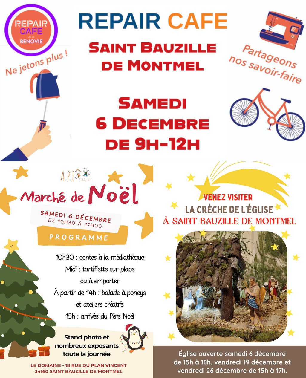 Ho, Ho, Ho 🎅 L'Association des Parents d'Élèves vous invite à son traditionnel Marché de Noël de Saint Bauzille de Montmel 🥳 ce samedi au Domaine dès 10h30 ! Nombreux exposants, restauration sur place ou à emporter le midi, animations pour les enfants toute la journée. Venez nombreux !