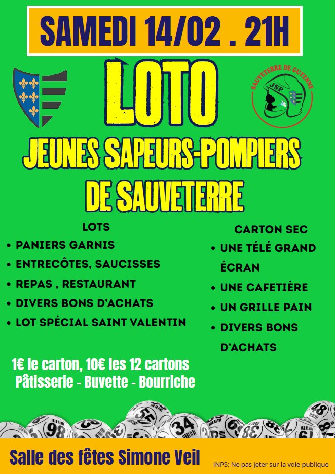 LOTO DES JEUNES SAPEURS-POMPIERS DE SAUVETERRE DE GUYENNE