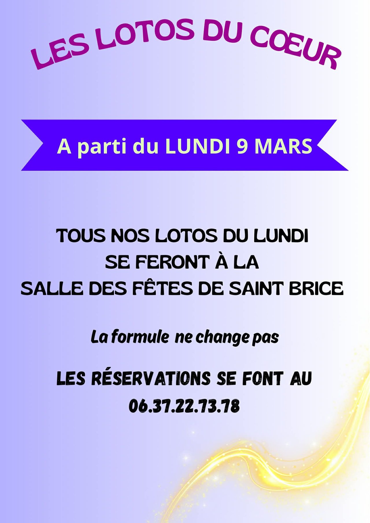A PARTIR DU LUNDI 9 MARS 2026 - TOUS LES LOTOS SE FERONT LE LUNDI SOIR