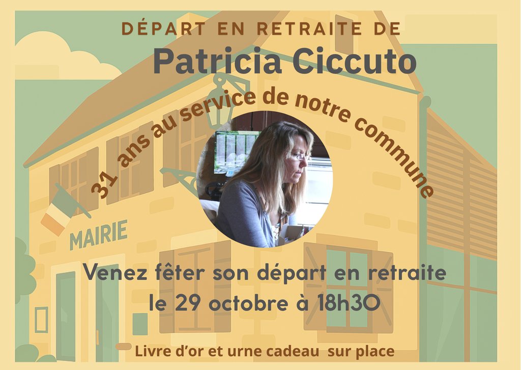 POT DE DEPART A LA RETRAITE DE VOTRE SECRETAIRE DE MAIRIE PATRICIA LE 29 OCTOBRE 18H30