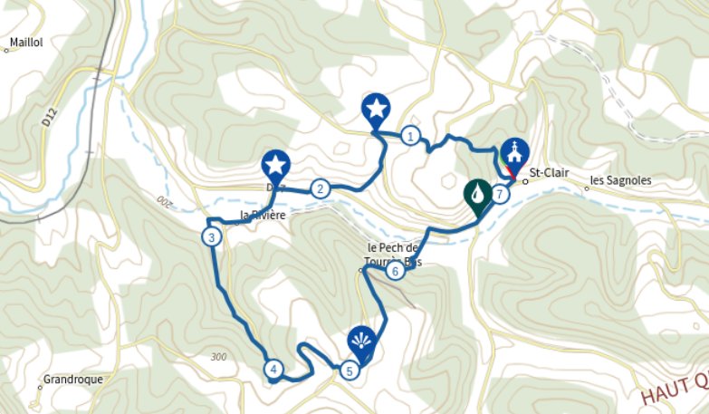 Le Sentier de la Falconie est une boucle de 7.15 km (+/- 2h30 selon l'allure) qui vous fera découvrir un très beau paysage naturel ainsi que le beau four à pain communal rénové situé à Montjouve, l'ancien lavoir/fontaine de "La Riviere", la Maison du fauconnier "La Falconie", un beau point de vue sur Gourdon et la statue représentant l'évêque Saint-Clair à l'entrée du village.  Pour accéder au fichier GPX, cliquer sur le lien de 'Quercy Outdoor' ci-après.